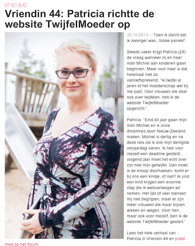 Ik sta deze week met mijn verhaal in het tijdschrift Vriendin. Op de website van het blad wordt het artikel in ieder geval grootst aangekondigd. Heb jij deze site via deze weg ontdekt, dan wil ik je bij deze alvast veel leesplezier wensen.