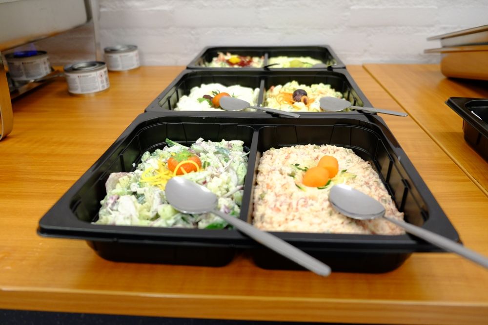 Het eten wordt geleverd in speciale koelboxen. Hierdoor hoef je ook geen ruimte in je koelkast te houden. Ideaal tijdens feestjes, want dan zitten die – in ons geval – al vol met bier, wijn en taart of hapjes voor tussendoor. Daarnaast geeft de bezorger uitleg over hoe je het eten vervolgens het beste, smakelijk kunt presenteren. Een uur tot anderhalf voordat je wil eten, zet je de brandertjes onder de au bain-marie bakken die je iets gevuld hebt met water en daarna kan het smullen beginnen. Samen met mijn gezelschap heb ik genoten van het Vis & Vlees Buffet. En niet één dag. Nee, de volgende dag (en zelfs de dag daarna) heb ik nog smakelijk van de restjes gegeten. Want zoals een goed buffet betaamd heb je écht volop keuze.