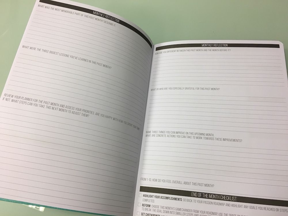 Het maandschema wordt gevolgd door de maandelijkse reflectie. Hier heb je alle ruimte om te beschrijven hoe je maand was. Wat zal je altijd bij blijven? Wat zijn de drie belangrijkste lessen die je hebt geleerd? Ben je blij met hoe je je tijd gebruikt? Is er iets veranderd in de afgelopen maand? Waar ben je dankbaar voor? Benoem drie dingen die je kunt verbeteren de aankomende maand en wat moet je daar voor doen? Verder is er een kleine checklist om te kijken of je nog steeds volgens plan aan het werk bent of juist moet bijsturen. Als je wilt dat een planner werkt, dan moet je deze vragen ook absoluut beantwoorden. En dat is lastig in deze tijd. We zijn tenslotte allemaal erg druk. Mijn advies: doe het wel. Het werkt zo verhelderend.