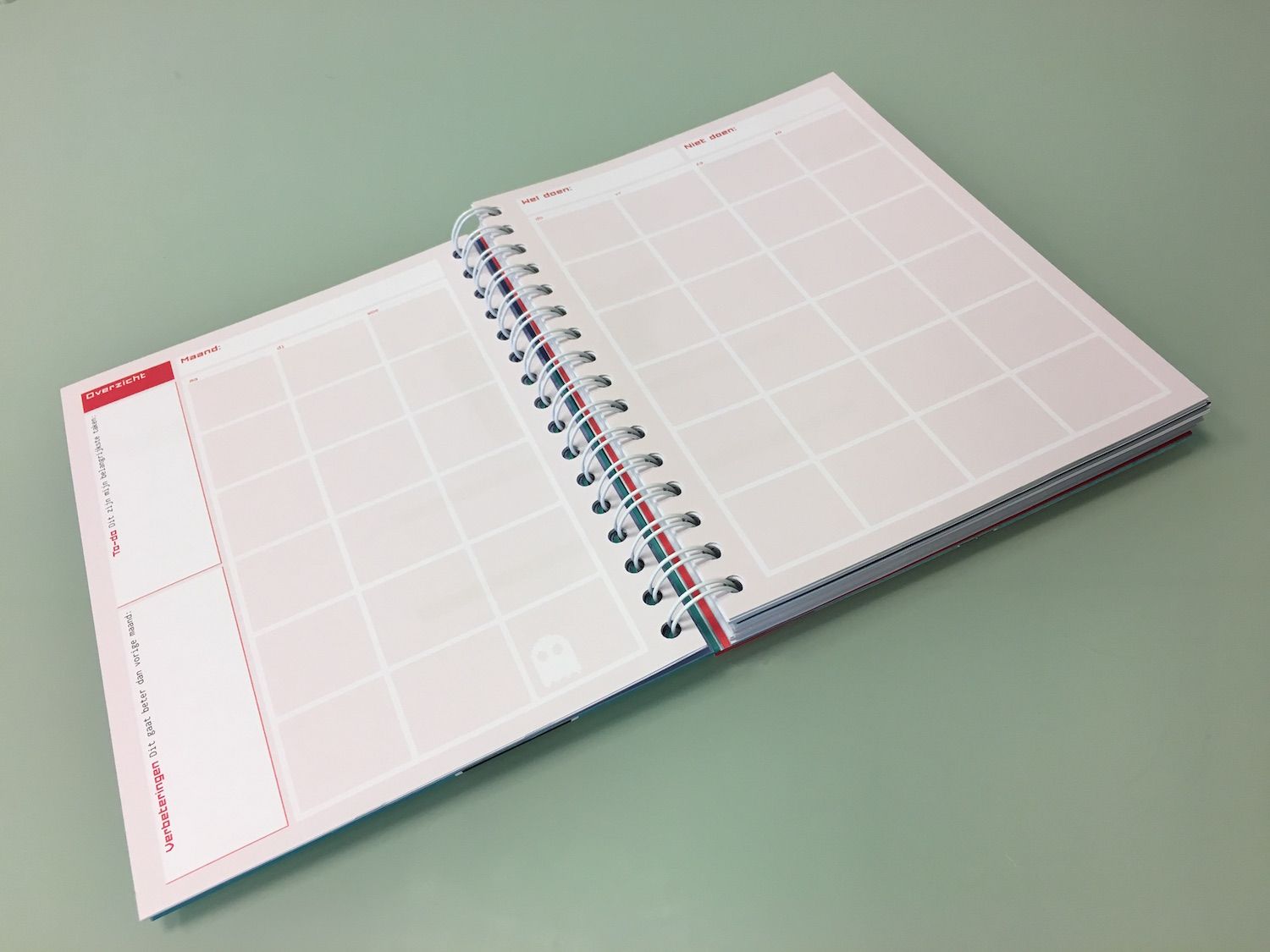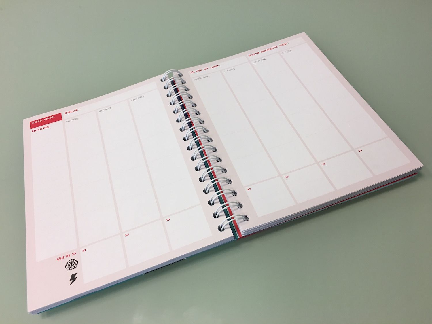 De agenda kent nog een aantal hersenspinselopschrijfruimte-pagina’s, die je eventueel kan gebruiken om de opdrachten te maken die er bij staan geschreven in de kantlijn. En vergeet daarnaast het jaaroverzicht niet in te vullen. Zorg dat je die pagina’s goed bewaard, want dat is jaren later natuurlijk nog heel leuk om te lezen.